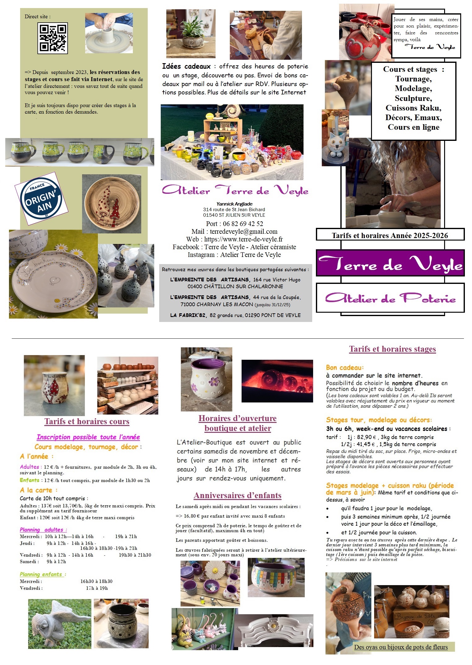 Poterie – Céramiques – Sculptures – Cours – Stages